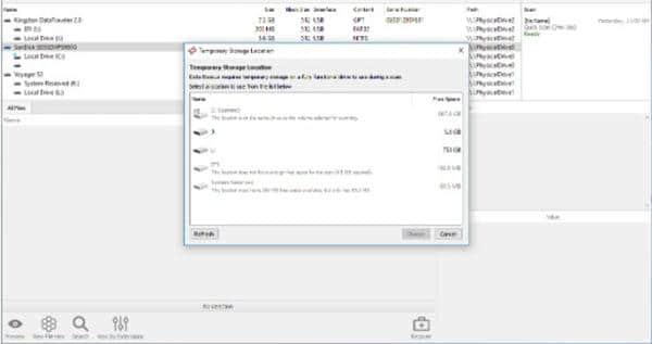 2.选择所需的临时存储位置和恢复位置。