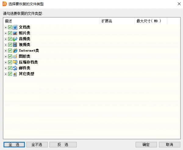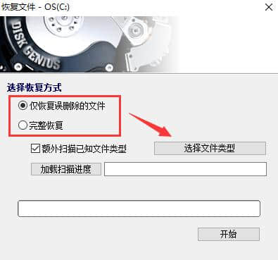 2.您可以选择仅恢复误删除的文件或完全恢复,也可以选择要恢复的文件类型。