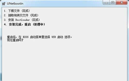 4.软件提示重启,进入bios设置,可以用u盘引导。