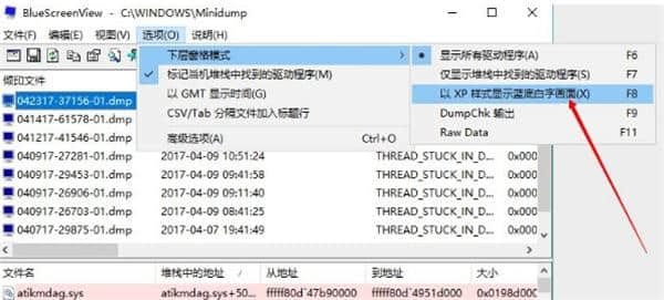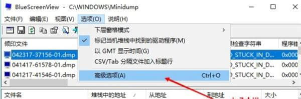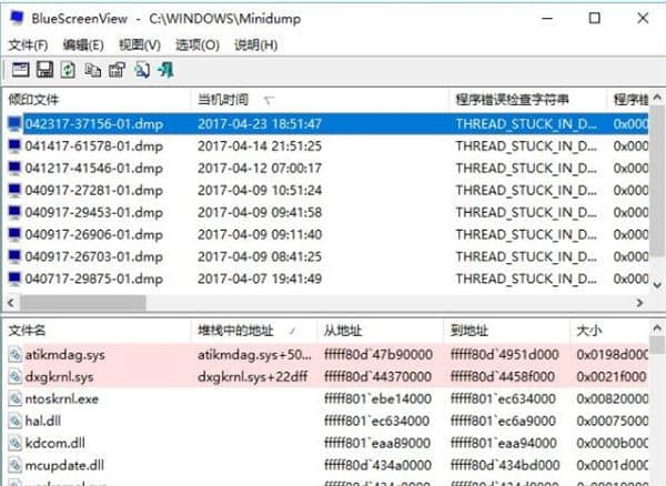 2.自动扫描当前文件夹以显示所有崩溃转储文件。