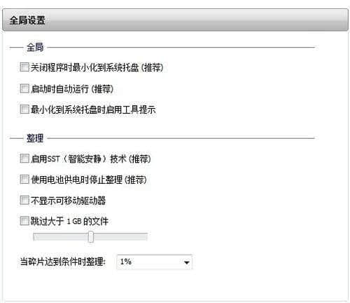 2.在全局设置中,未选择启动时自动操作(硬盘不应过于频繁清理)。如果您使用笔记本电脑,您可以勾选“启用SST技术”和“使用电池电源时停止清洁”