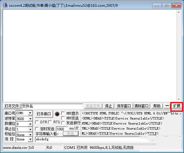 1.打开sscom串口助手,在界面点击扩展。