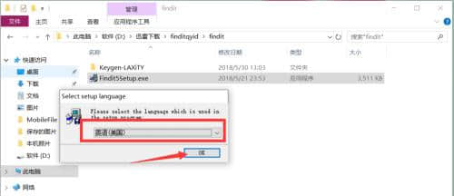 2.程序运行后,弹出语言选择界面,选择“英语”