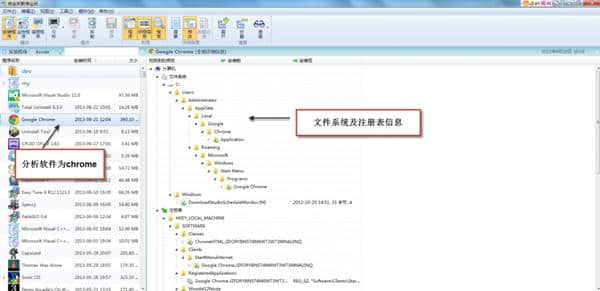 点击分析模块按钮,将帮助您分析软件安装文件的位置,您将看到完整的软件结构。