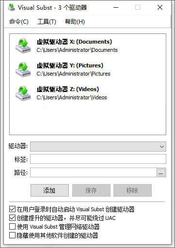 3.保存虚拟驱动器列表,并在启动时加载。