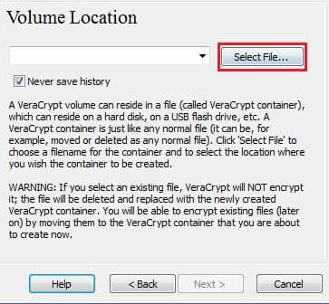 4.您必须指定要创建VeraCrypt卷(文件容器)的位置。