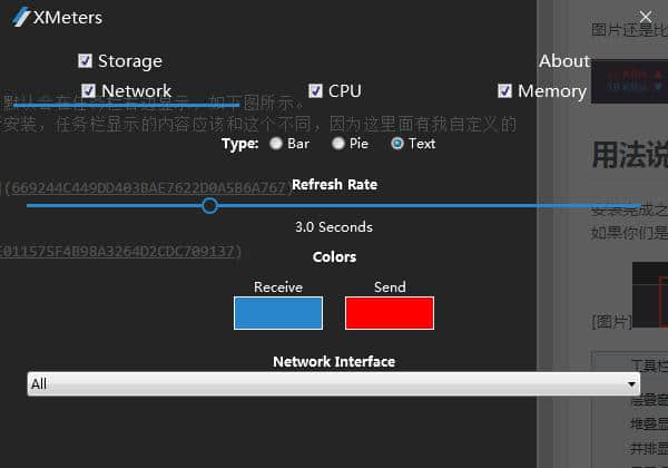 3.点击托盘中的XMeters即可看到设置界面。