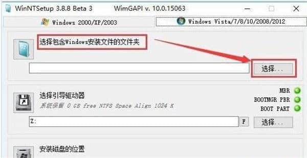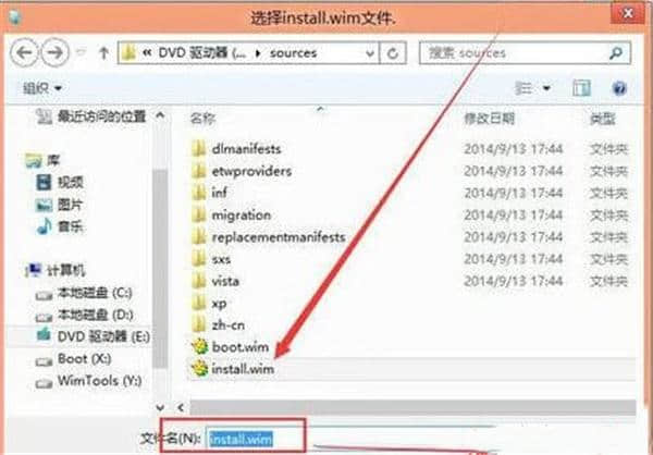 4.使用下面的“选择”按钮找到图像文件的解压缩文件夹和后缀为“intstall.wim”的文件