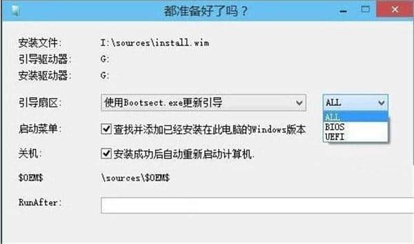 7.选择使用Bootsect.exe更新引导。如果您想使用现有组件,请选中第一个选项,然后选中下一个选项。
