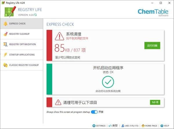 Registry Life是一款非常安全的数据管理软件,帮助用户保护自己的安全,定期清理缓存垃圾,进一步优化配置,让我们拥有一个健康良好的存储环境。Registry Life的安装使我们的启动速度更快,并为我们的办公环境提供了一些实用的安排。