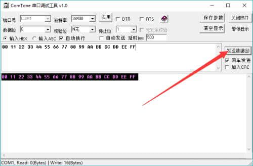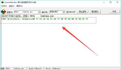 2.选择“所有通讯端口”作为序列号,并勾选右侧的“十六进制/十六进制”。