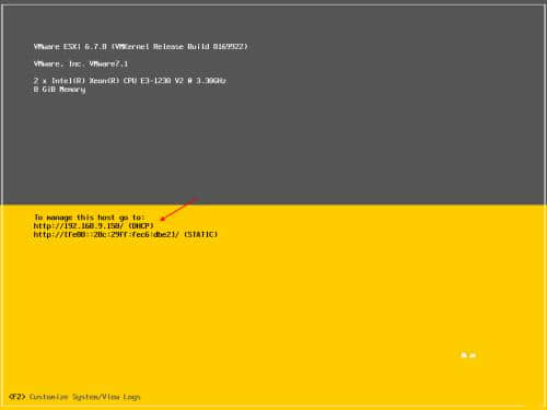 8.引导后,使用浏览器中的IP地址登录到Vmware ESXi。