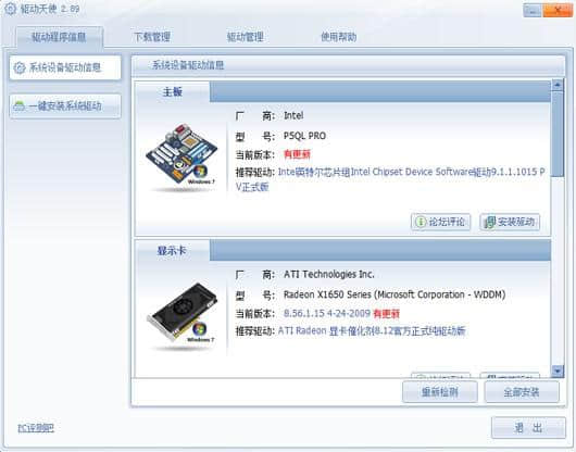 1.通过驱动天使,不用去厂家找最新的驱动。