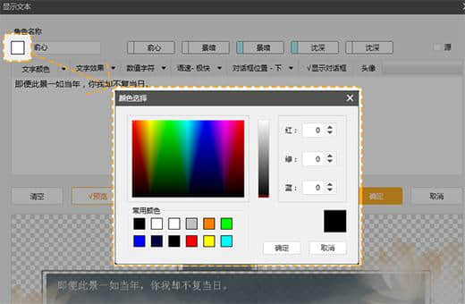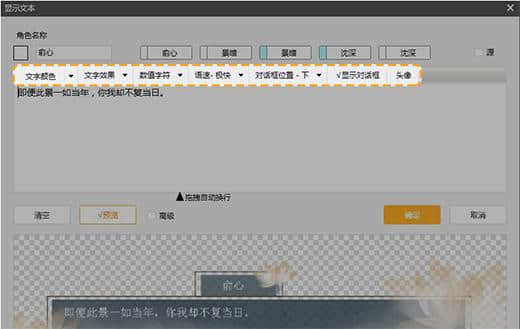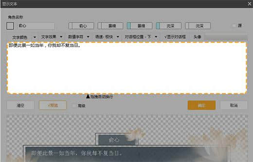 1.用鼠标双击【效果画面】中的【双击此处设置对话】弹出文本设置栏。