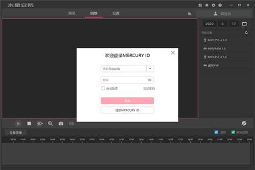 电脑客户端的远程监控可以通过将同一个MERCURY ID绑定到录像机或摄像头和安防来实现。请遵循以下方法: