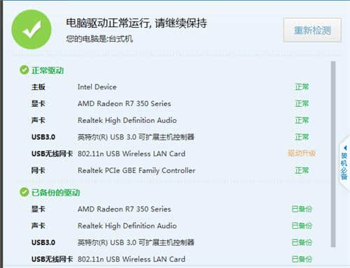2.耐心等待测试完成。测试完成后,将显示计算机上的所有驱动程序。