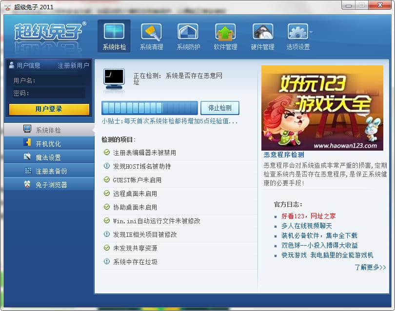 超级兔子下载安装是一款功能齐全、操作简便的专业实用的电脑工具。超级兔子()电脑版下载支持检测脑诊断显卡、CPU、硬盘等稳定性和运行速度的电脑软件。,同时支持对电脑的优化和清理,从而使垃圾得到深度清理。