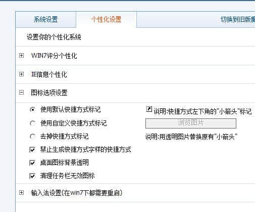 2.请选择图顶部的[个性化设置]选项。进入设置界面后,可以选择勾选【使用默认快捷标记】显示超级兔子图标。如果没有,请选择“删除快捷方式标记”。