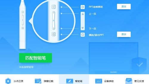 5.您可以调整智能笔指定的按键功能,例如,将PPT投影画笔更改为冻结/放大屏幕按键。