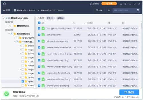 2.完全恢复:可以恢复因格式化、病毒攻击等原因丢失数据的分区数据;