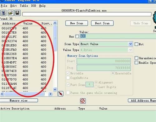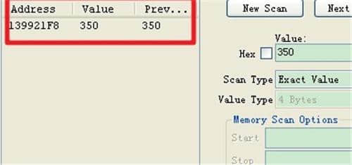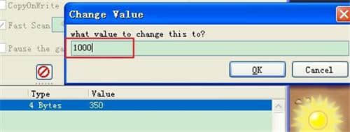 6.回到游戏,消耗一些阳光,将其更改为350,将作弊引擎中的Hex更改为350,然后单击下一次扫描。