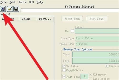 2.打开CE修改器(作弊引擎),点击小电脑图标,如图。