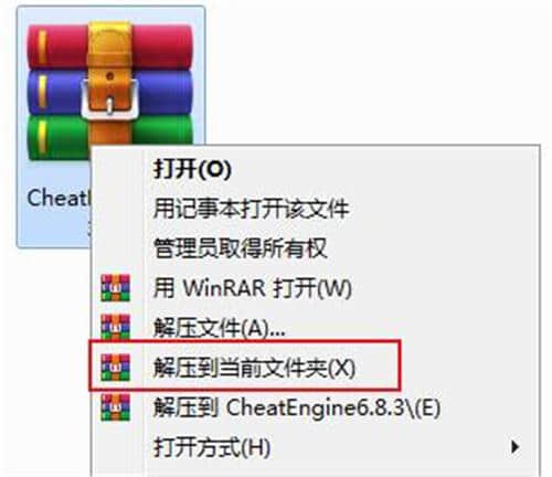 1.首先从这个网站下载CE修改器(作弊引擎)的安装包,右键点击安装包,选择解压到当前文件夹。
