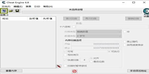 3.打开后可以看到ce修改器(作弊引擎)的主界面。