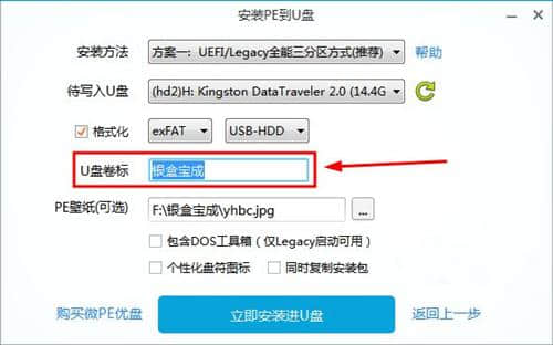 3.【u盘标签】可以随意命名,方便识别u盘。爱情学院在此设定为公司名称:银盒宝成。