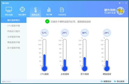 3.温度是保证硬件正常水平、稳定性和流畅性最有影响的因素。因此,硬件狗狗提供了详细的“温度检测”功能。
