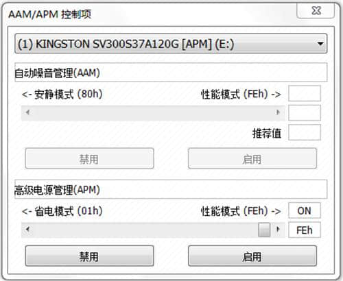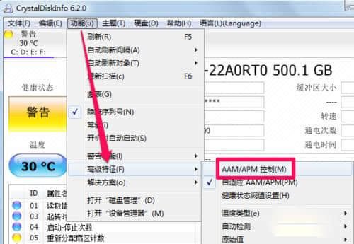 6.同样,可以在crystaldiskinfo的高级功能中进行许多设置,其中AAM/APM控制是最重要的。