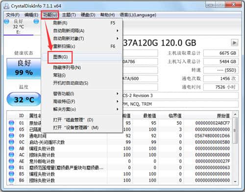 2.点击【功能】【图表】,在这里,我们可以通过下拉菜单的方式,以图表的形式清晰的展示我们硬盘的各种相关信息。