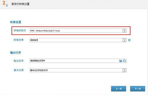 3.单击下一步进入输出设置页面。选择WMA作为输出格式,完成后,单击下一步开始提取。