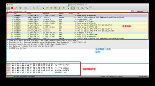 2.结果的显示主要分为三个区域。顶部是请求和响应的列表,每个记录代表一个请求或响应交互。