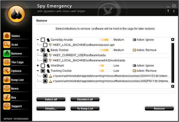 1.直观清晰的用户界面,用于删除间谍软件。