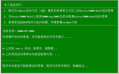 3.在Vista/2008/Win7上安装2000/xp/2003后,添加并修复原来的Vista/2008/Win7启动菜单。