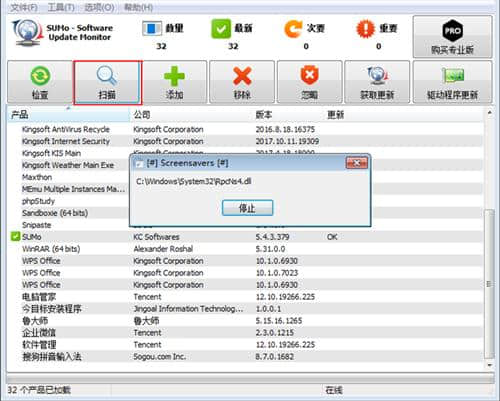 3.单击“扫描”扫描计算机中的所有安装程序,自动分析更新,并检查驱动程序更新。