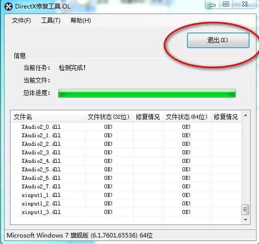 2.软件自动检测修复后,点击“退出”完成检测修复问题的主要流程。
