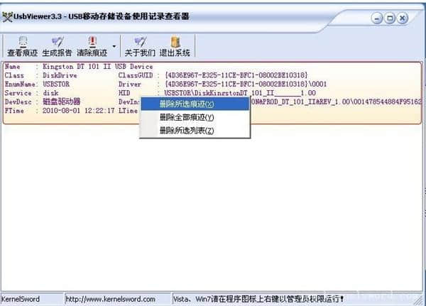 3.“清除痕迹”可以一键清除本地USB移动存储设备的使用记录。