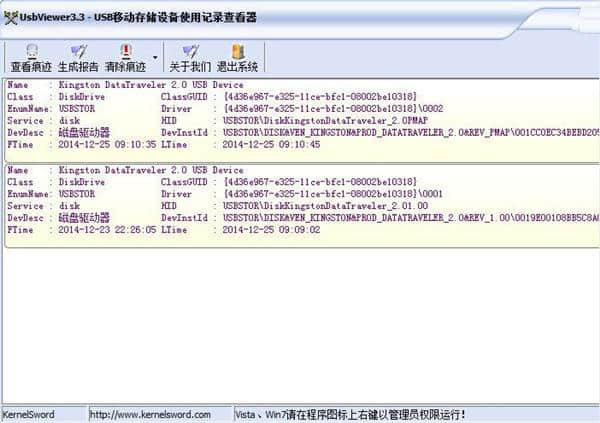 1.使用记录查看器支持查看u盘、移动硬盘、MP3、SD卡等设备。