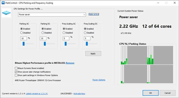 parkcontrol免费版免费下载是系统软件分类下一款为你带来一个更好的高性能CPU的使用体验电脑软件,创佳软件园小编给大家带来parkcontrol下载和介绍,也许parkcontrolv1.3.1.8的存在为大家提供了别样选择!推荐同学们下载使用。