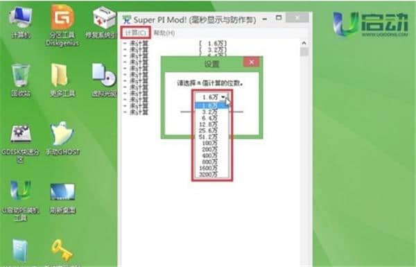 单击开始菜单硬件检测开始cpu速度测量superpi。