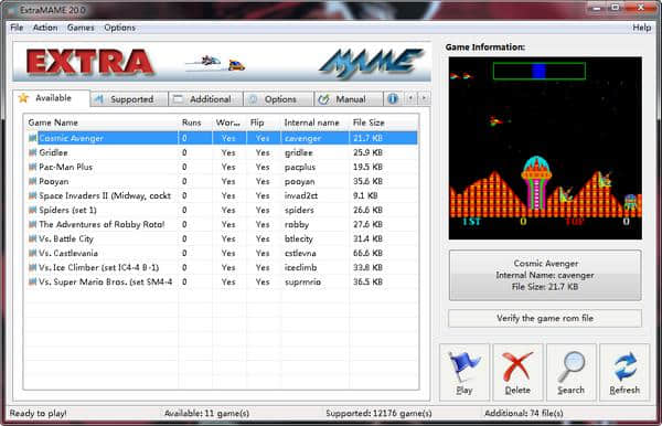 ExtraMAME软件下载,街机模拟器多功能管理服务助手,ExtraMAME街机模拟工具可以为你带来更便捷的街机体验。所有不同的街机游戏都可以让你在电脑会议中轻松体验,并且所有数据都可以快速查看。多服务项目全面管理,可以更好的添加数据内容,一键快速管理多菜单功能。