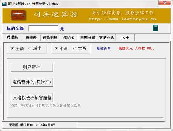 司法速算器软件下载,这里是一款便携操作的专业办公应用,也是专门为司法业务提供的辅助设备。主要用于计算各种法律费用。司法速算器中的每一个数据都会给你展示详细的类别,以及各种兴趣的数据内容,这里也为你清晰的提供了。