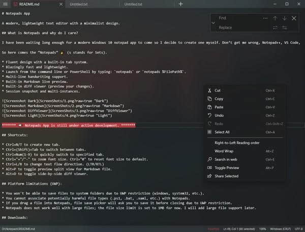 Notepads软件下载,一款重量级的文本内容编辑器,为用户提供了多种丰富的设计布局。Notepads使得我们日常办公也有很多优点。不断解决无数的办公应用问题,修改各种参数的内容,会带来不同的处理效果,同时也会给你带来多种输入方式。