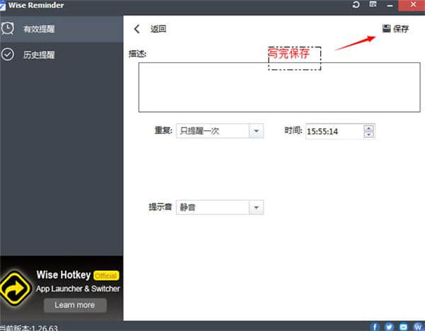 童鞋们,Wise Reminder绝对能满足亲们的需求,从软件界面到软件功能,绝对让人眼前一亮,欢迎大家前来下载使用!当然本站还有更多值得推荐的软件,例如搜狗繁体输入法,快来下载体验一下吧。