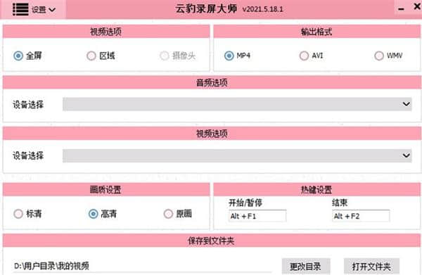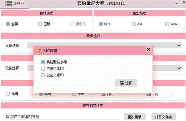 2.录制的输出可以是mp4、avi、wmv等常见格式。