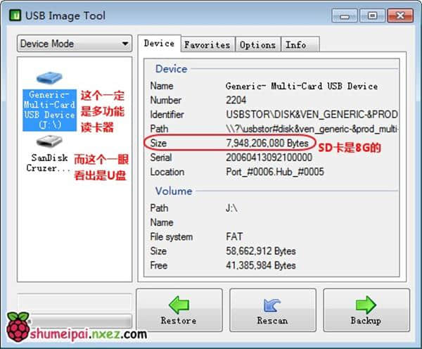 1.可以通过设备名称和SD卡大小直接判断写入的设备是否正确。
