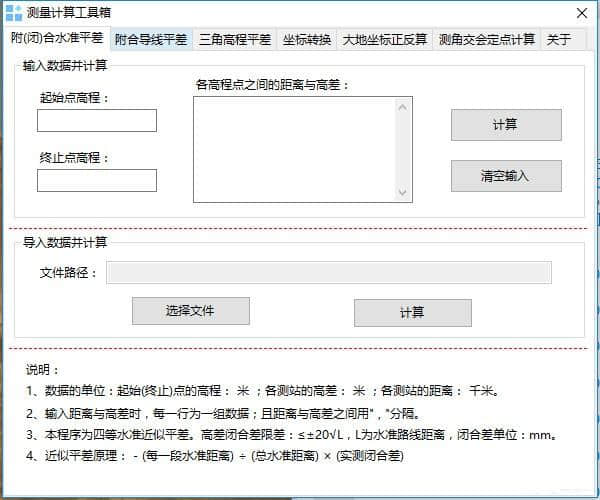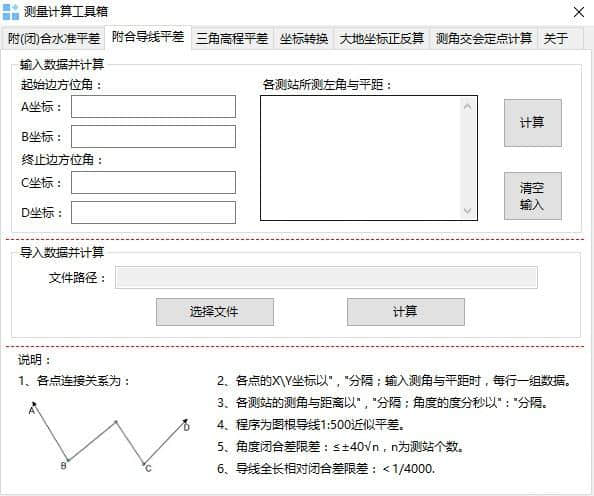 3.适用于水准测量和三角高程测量路线的平差计算。