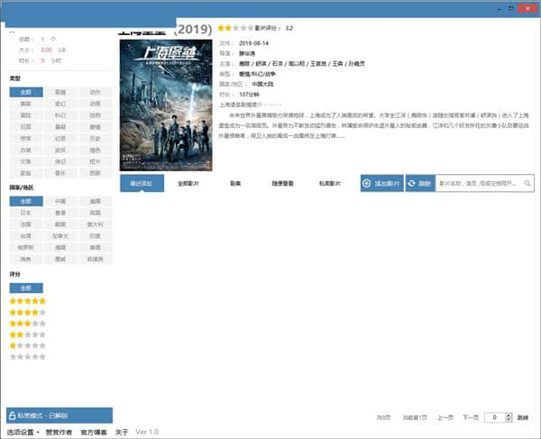 4.支持观看,可以显示导演、主演、流派、出版国家等。